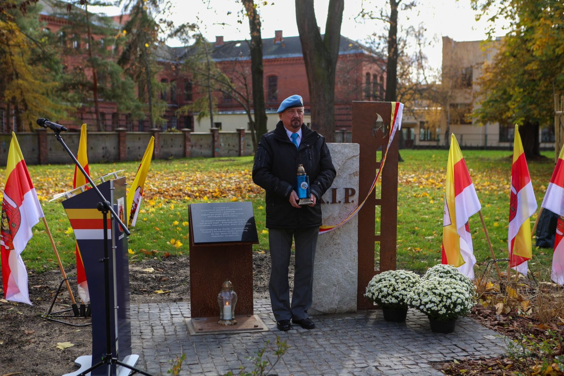 W dniu 31.10.2025 r. Prezes Zarządu Koła kol. Leszek KAZNOWSKI reprezentował nasze Koło podczas uroczystości odsłonięcia obelisku, który stanął w miejscu dawnego cmentarza katolickiego przy ulicy Kosynierów Gdyńskich (dawna ul. Ogrodowa). Inicjatywa upamiętnienia miejsca, w którym istniał cmentarz pojawiła się podczas niedawnej rewitalizacji ulicy. Ostatnie nagrobki oraz kaplica cmentarna przetrwały w tym miejscu do 1945 roku, gdy zostały zniszczone w czasie działań wojennych. Dziś teren dawnej nekropolii porastają 200-letnie lipy i kasztanowce.