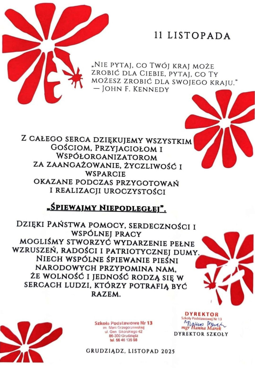 „ŚPIEWAJMY NIEPODLEGŁEJ” w Szkole Podstawowej Nr 13 w Grudziądzu 2025.