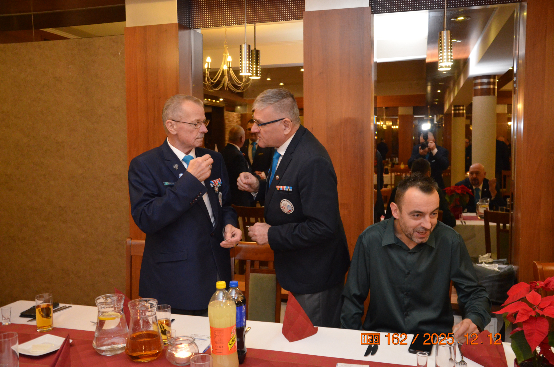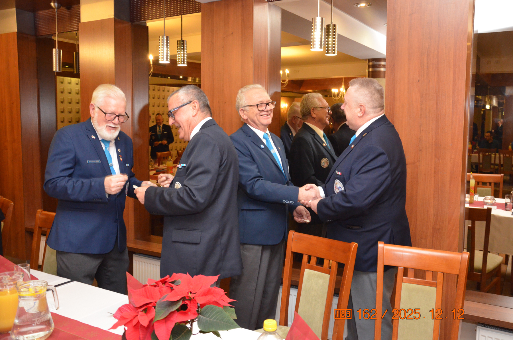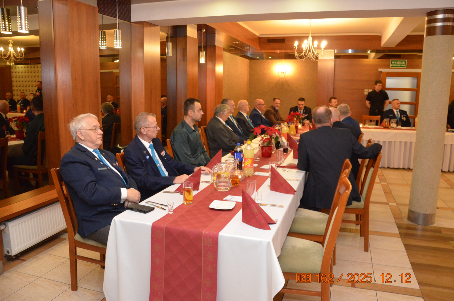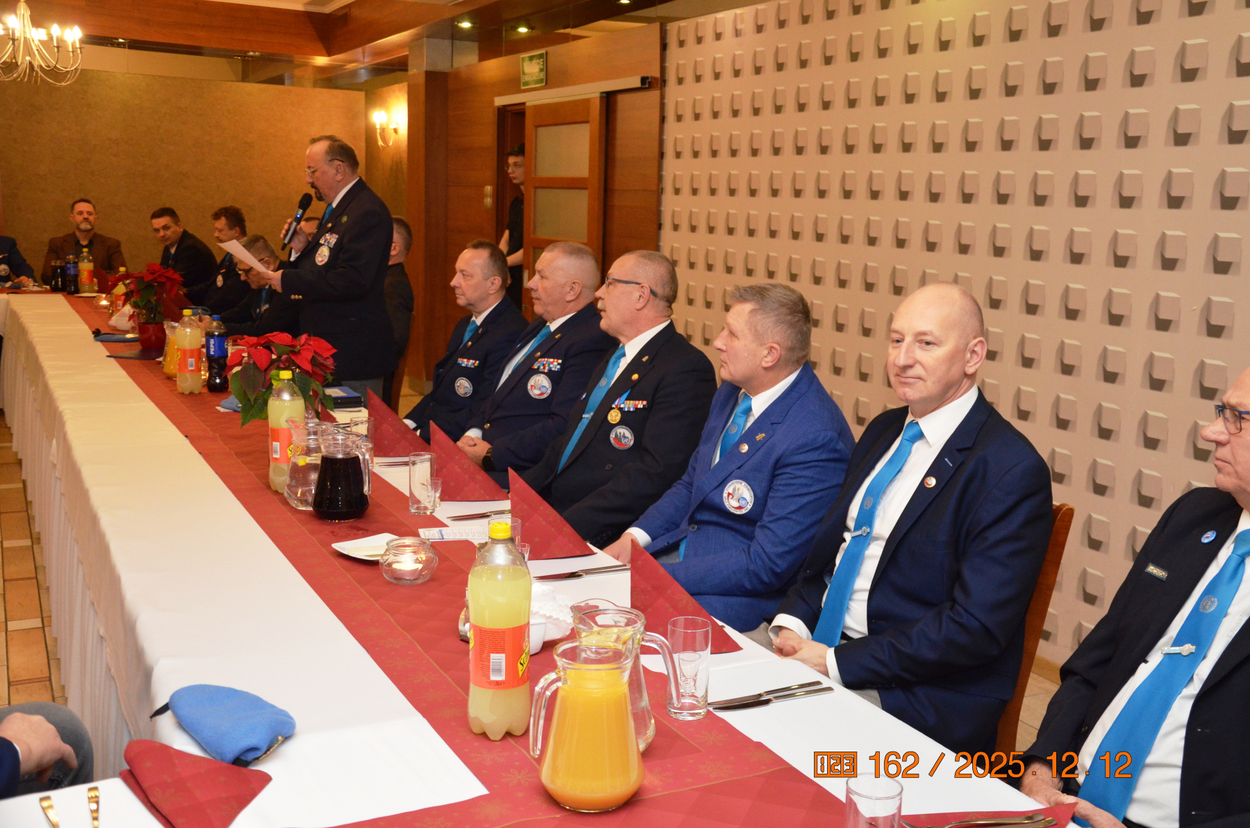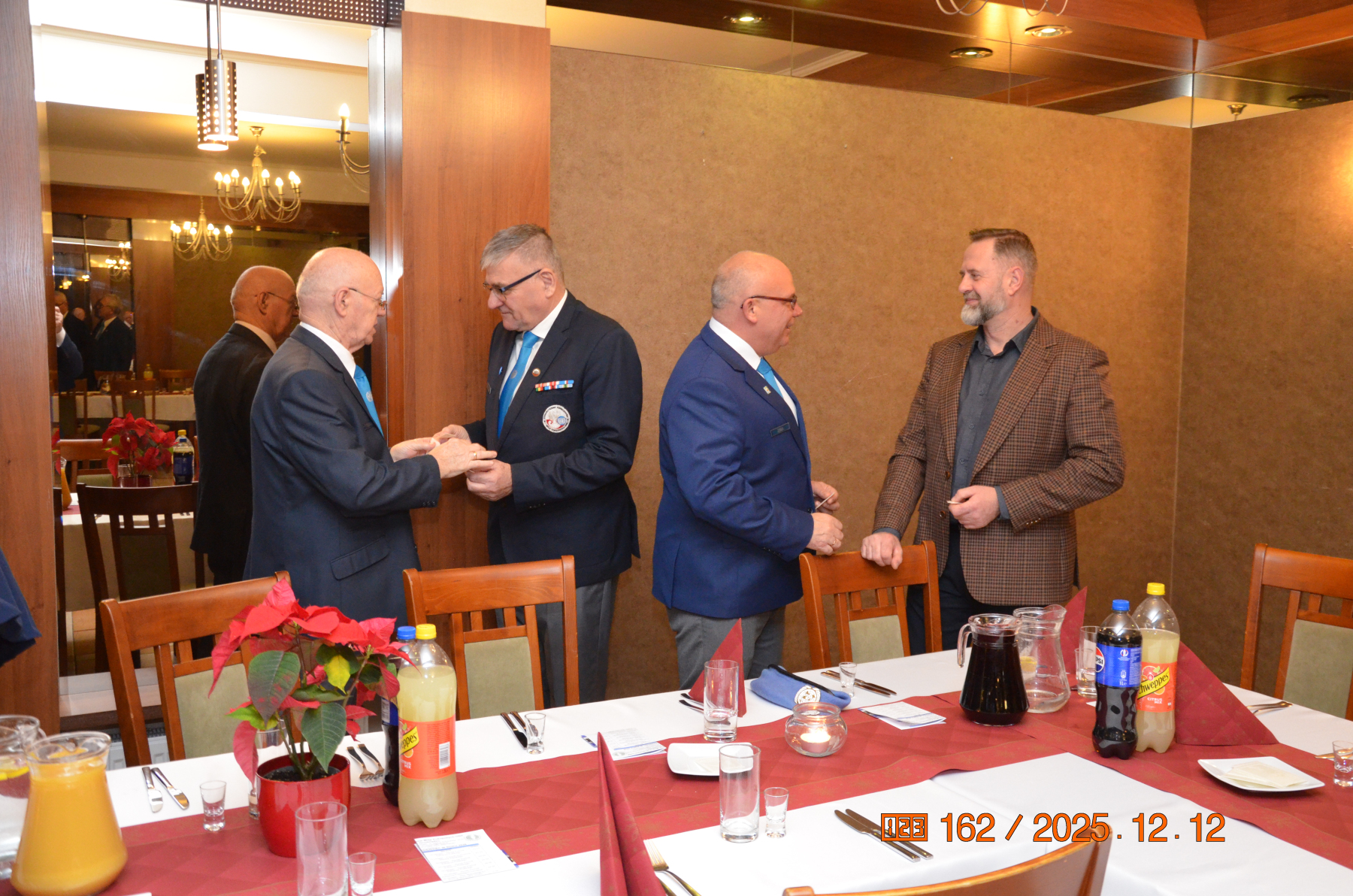 W dniu 12.12.2025 r., w gościnnych progach restauracji Hotelu RAD spotkaliśmy się na tradycyjnym i uroczystym spotkaniu świąteczno – noworocznym. „Nadchodzący czas to chwile radości, ale też zadumy…” – tymi słowami powitał wszystkich zebranych Prezes Zarządu Koła kol. Leszek KAZNOWSKI. W ten szczególny czas przywołaliśmy kolegów, którzy w bieżącym roku odeszli na wieczną wartę śp. Jerzego PALIKOWSKIEGO i śp. Edwarda SROKĘ. Minutą ciszy oddaliśmy im hołd i wszystkim weteranom, którzy polegli, zmarli i służyli poza granicami państwa, a których nie ma już z nami. Dziękujemy zaproszonym gościom, Kapelanowi grudziądzkiego Garnizonu ks. mjr. Włodzimierzowi SKOCZEŃ, członkom wspierającym Stowarzyszenie kolegom: Edwardowi PROSOTOWICZOWI, Jackowi URBAŃCZYKOWI i Józefowi JABŁOŃSKIEMU za obecność i wspólnie spędzony czas. W licznym gronie weteranów naszego Koła wspominaliśmy wigilijne spotkania spędzone kiedyś – z dala od bliskich i rodzin. Uroczystość była również okazją do wyróżnienia weteranów naszego Koła pamiątkowymi medalami i certyfikatami. Wręczone zostały również legitymacje Stowarzyszenia. Życzymy wszystkim radosnych Świąt Bożego Narodzenia!