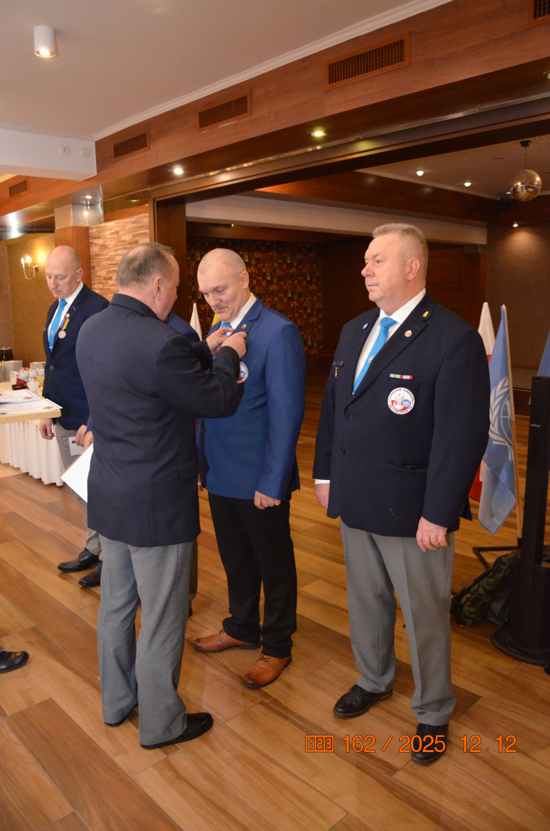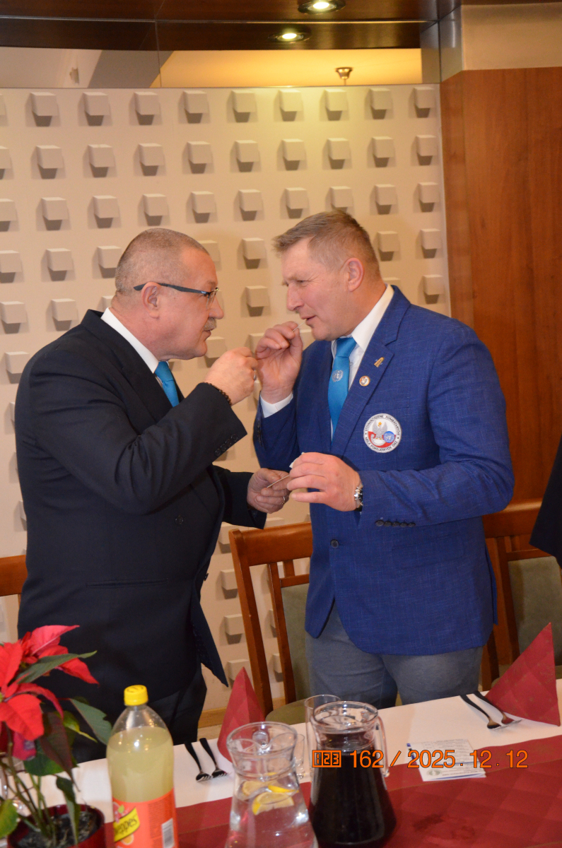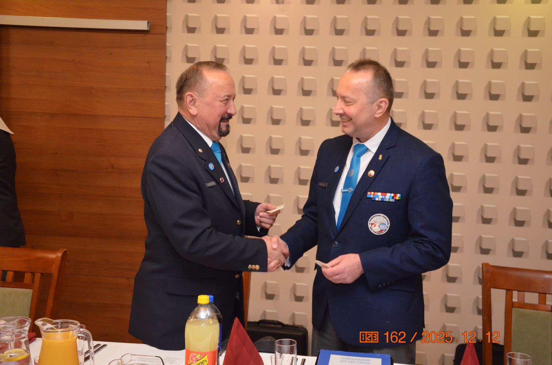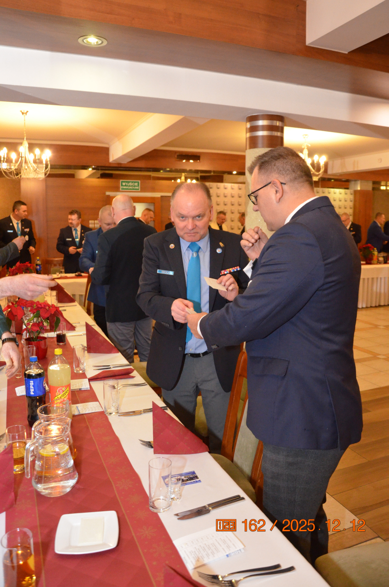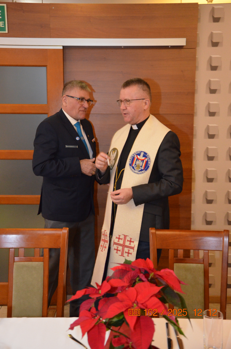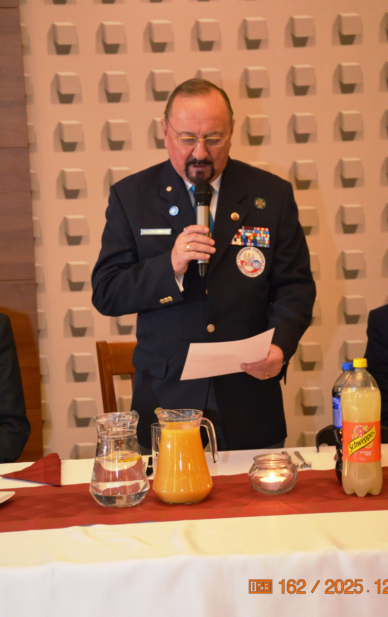 W dniu 12.12.2025 r., w gościnnych progach restauracji Hotelu RAD spotkaliśmy się na tradycyjnym i uroczystym spotkaniu świąteczno – noworocznym. „Nadchodzący czas to chwile radości, ale też zadumy…” – tymi słowami powitał wszystkich zebranych Prezes Zarządu Koła kol. Leszek KAZNOWSKI. W ten szczególny czas przywołaliśmy kolegów, którzy w bieżącym roku odeszli na wieczną wartę śp. Jerzego PALIKOWSKIEGO i śp. Edwarda SROKĘ. Minutą ciszy oddaliśmy im hołd i wszystkim weteranom, którzy polegli, zmarli i służyli poza granicami państwa, a których nie ma już z nami. Dziękujemy zaproszonym gościom, Kapelanowi grudziądzkiego Garnizonu ks. mjr. Włodzimierzowi SKOCZEŃ, członkom wspierającym Stowarzyszenie kolegom: Edwardowi PROSOTOWICZOWI, Jackowi URBAŃCZYKOWI i Józefowi JABŁOŃSKIEMU za obecność i wspólnie spędzony czas. W licznym gronie weteranów naszego Koła wspominaliśmy wigilijne spotkania spędzone kiedyś – z dala od bliskich i rodzin. Uroczystość była również okazją do wyróżnienia weteranów naszego Koła pamiątkowymi medalami i certyfikatami. Wręczone zostały również legitymacje Stowarzyszenia. Życzymy wszystkim radosnych Świąt Bożego Narodzenia!
